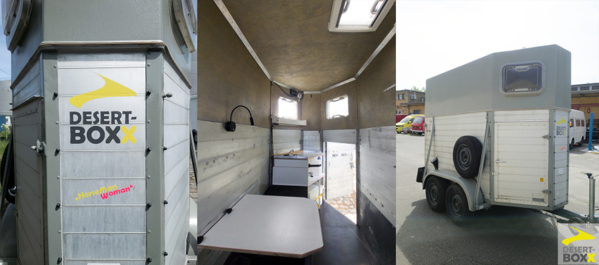 DESERT-BOXX "Horseman": ein autarkes mobiles Office, Tisch/Liegefläche, Solarstrom + 50Ah-Akku, DCAC/USB/LED, CE-220/FI/Schuco, Standheizung, Küche/fl. Wasser, WC, Dusche extern, Dachfenster, Laderampe-Terrasse, komplett neu aufgebaut und isoliert. von aussen ein unauffälliger Pferdtransporter ... Der Anhänger ist zugelassen und steht zum Verkauf.
